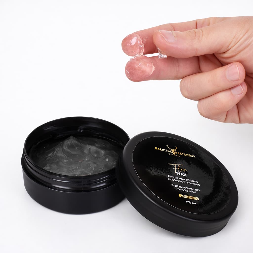 Cera moldeadora a base de agua dedicada al cuidado y peinado del cabello y la barba masculina.