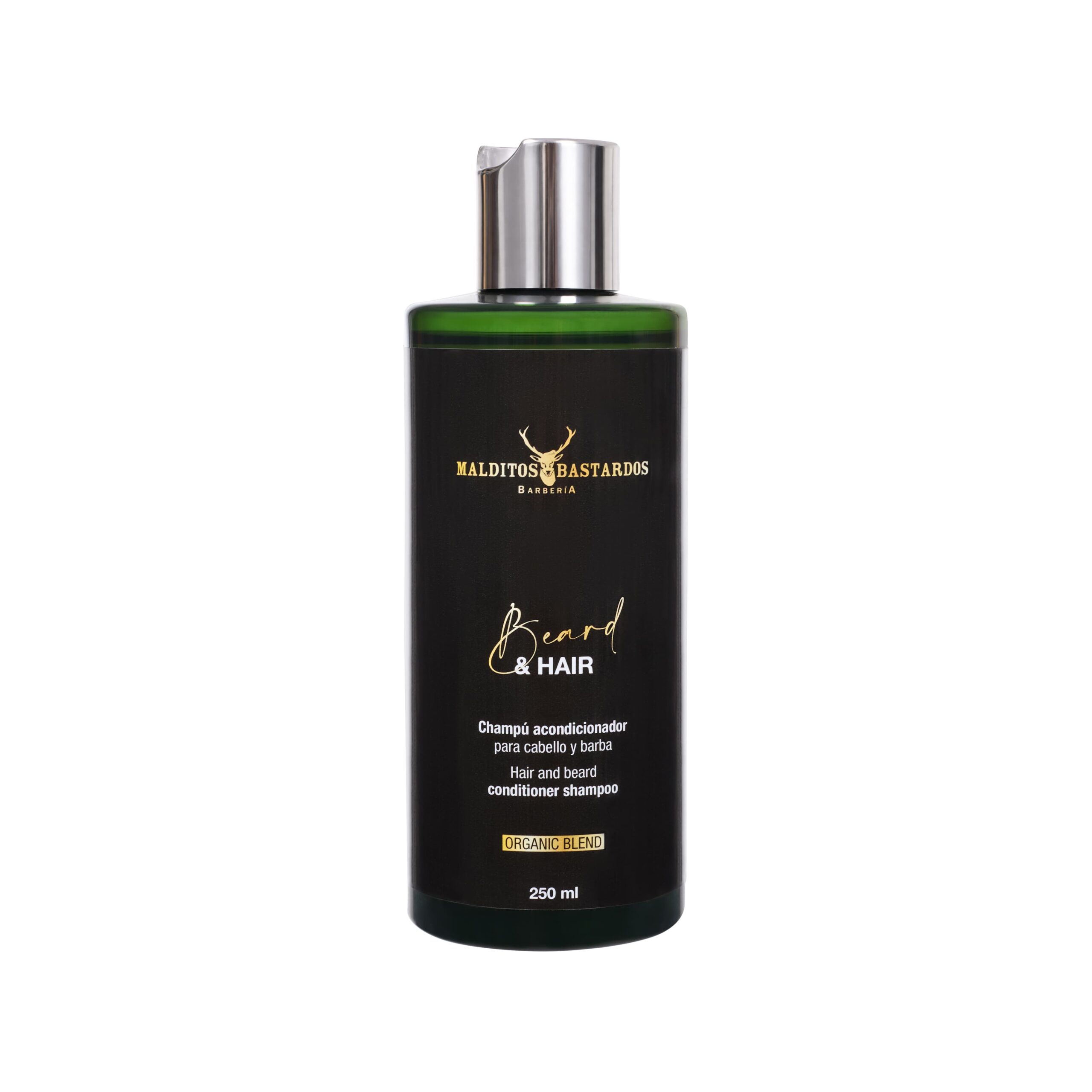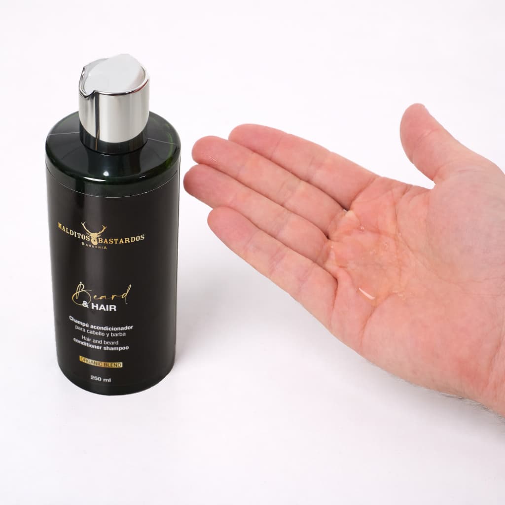 Champú para CABELLO Y BARBA formulado con ingredientes especialmente adecuados para el cabello y la barba de los hombres.