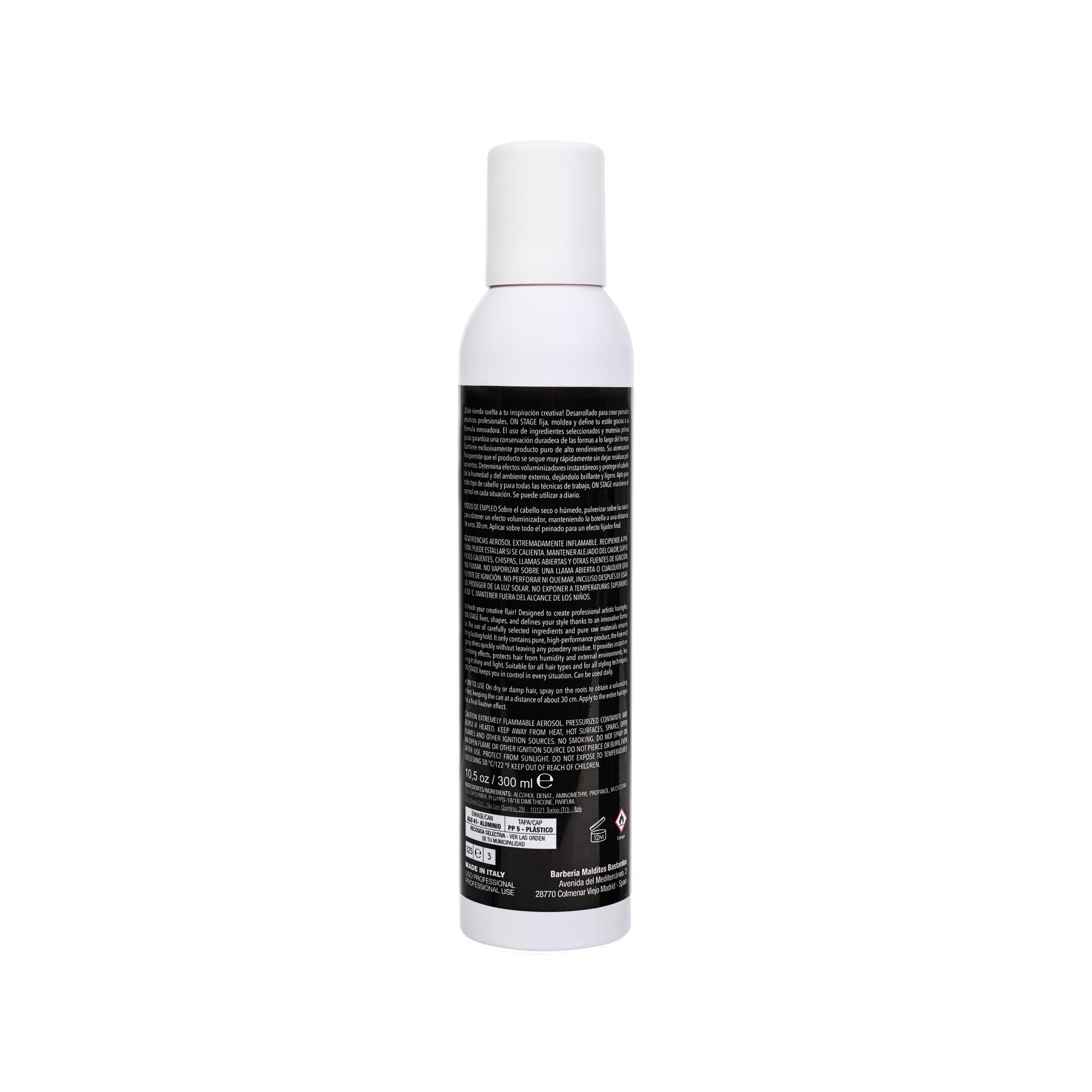 ¡Dale rienda suelta a tu inspiración creativa! Desarrollado para crear peinados artísticos profesionales, ON STAGE fija, moldea y define tu estilo gracias a su fórmula innovadora. El uso de ingredientes seleccionados y materias primas puras garantiza una conservación duradera de las formas a lo largo del tiempo. Contiene exclusivamente producto puro de alto rendimiento. Su atomización fina permite que el producto se seque muy rápidamente sin dejar residuos polvorientos. Determina efectos voluminizadores instantáneos y protege el cabello de la humedad y del ambiente externo, dejándolo brillante y ligero. Apto para todo tipo de cabello y para todas las técnicas de trabajo, ON STAGE mantiene el control en cada situación. Se puede utilizar a diario. 10,5 oz / 300 ml.